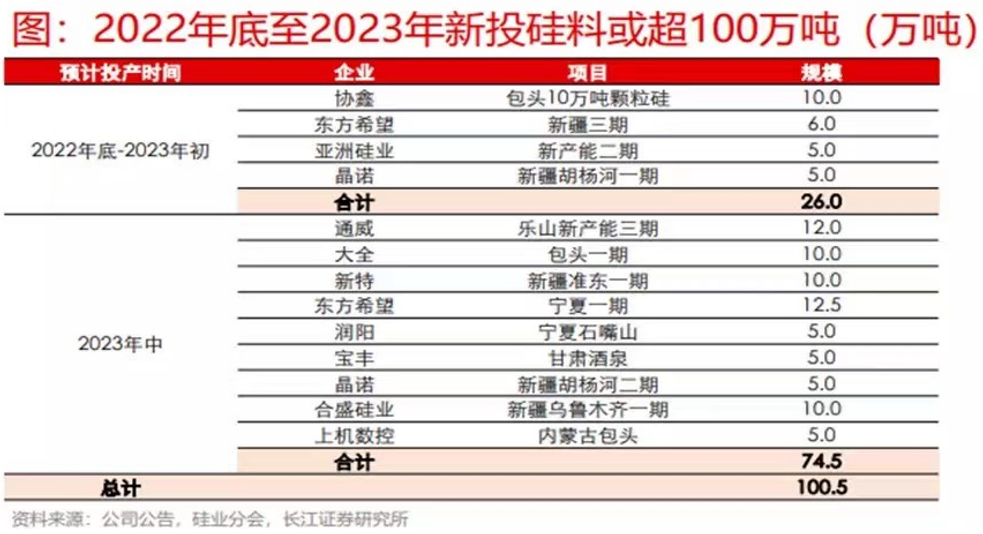 2021年,硅料公司便逐渐扩产,产能65万吨;而2022年实际产能就达到了85万吨,名义产能更是达到了130万吨。看着一个个新产能规划,市场在2022年初便预计三季度开始硅料价格逐渐下降。